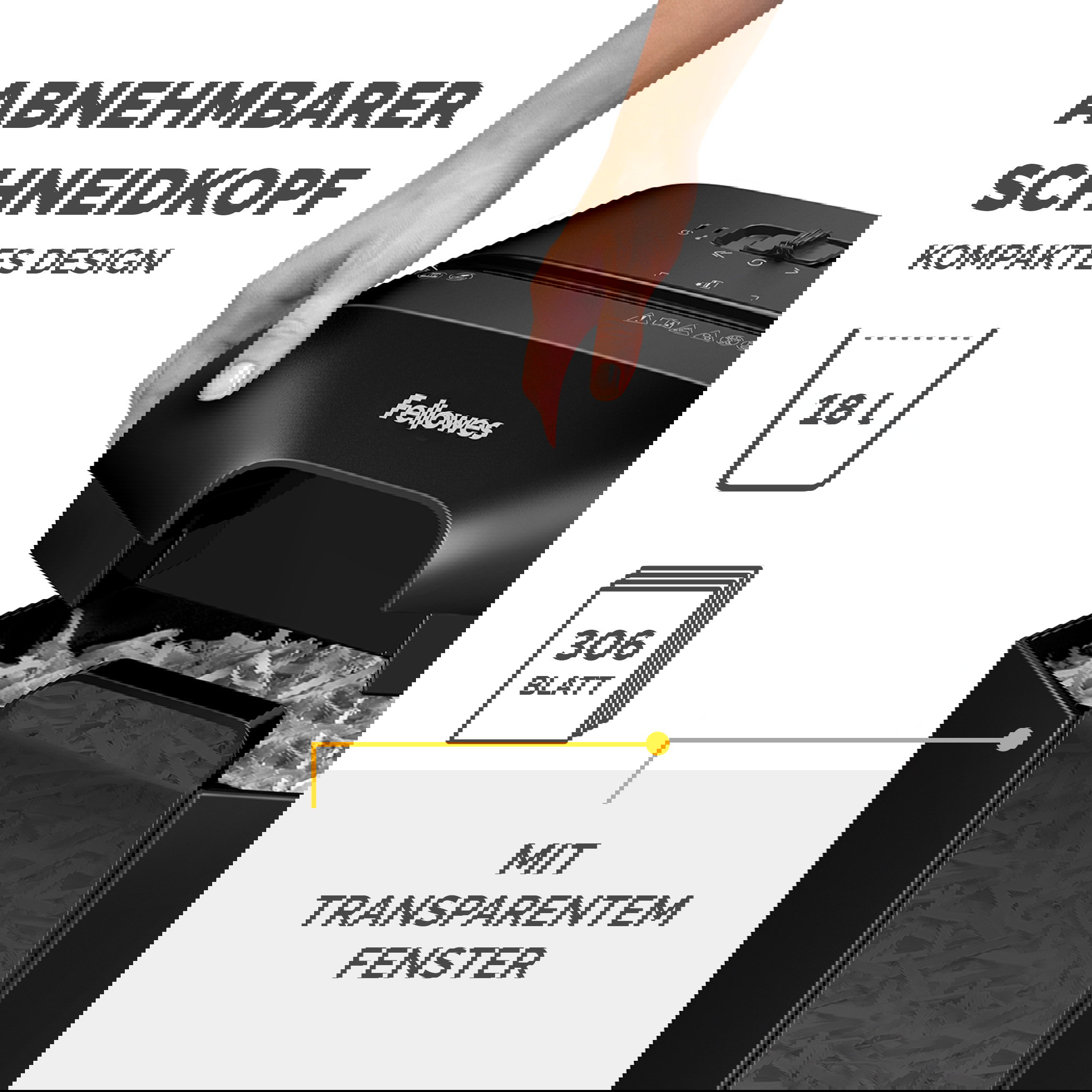 Produktbeschreibung Aktenver. Fellowes 4407501 P4 schwarz Lx70 4x40 mm 18l