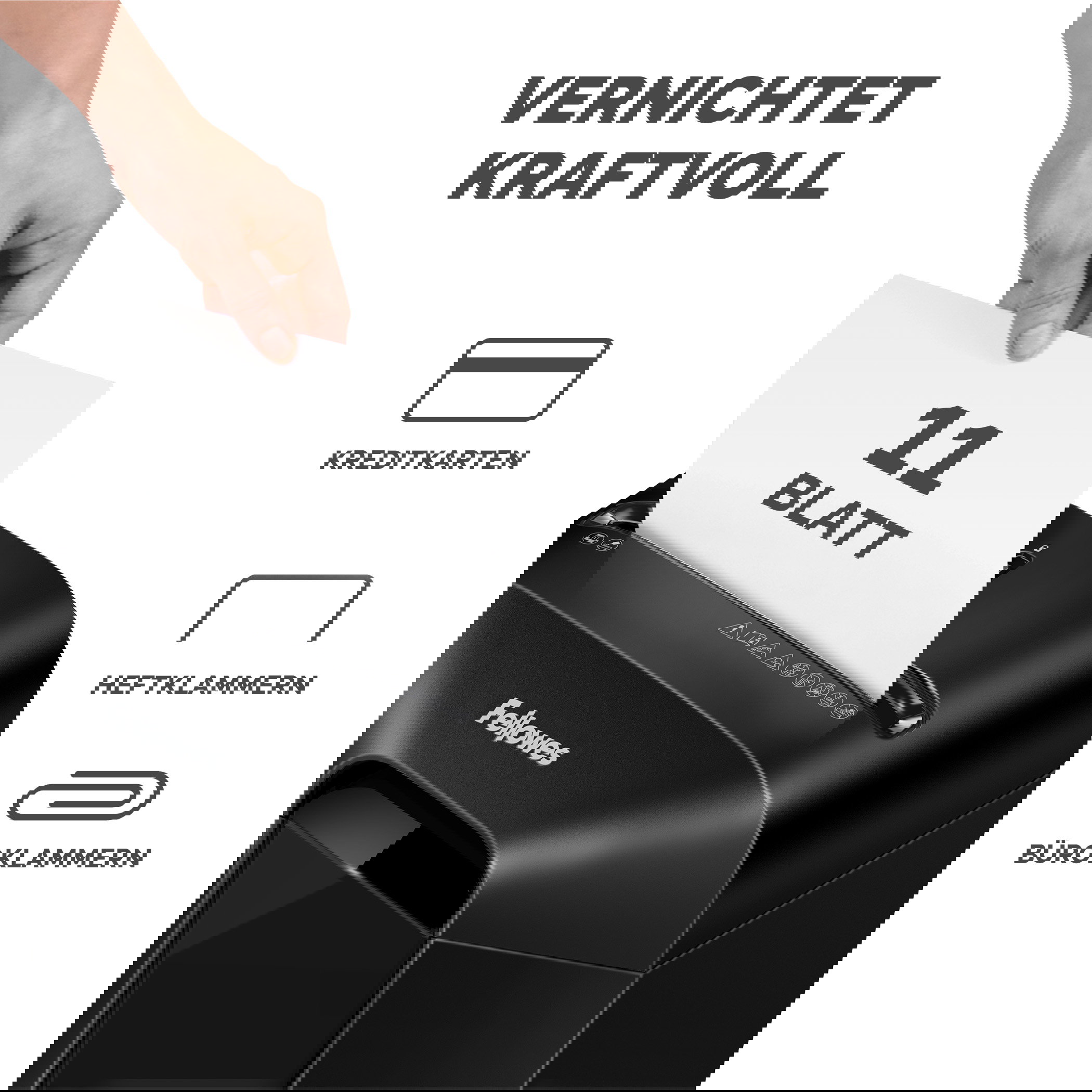 | Vernichtet: | Papier, Heftklammern, Büroklammern, Kreditkarten |