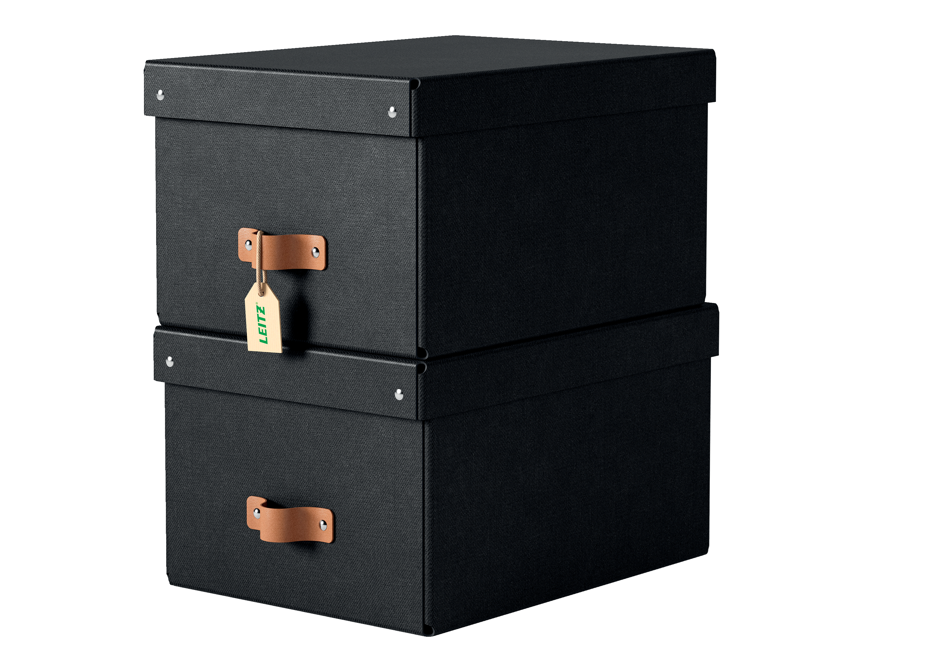 Leitz Puro Aufbewahrungsbox mit Deckel, mittel, 17L, 100% recycelter Karton, 2er-Pack · Ordnung halten und sich wohlfühlen - mit den Leitz Puro mittelgroßen Aufbewahrungsboxen aus Karton mit Deckel schaffen Sie sofortigen Stauraum und befreien Ihre Räume von Unordnung. Dieses Set aus zwei dekorativen Aufbewahrungsboxen mit einem Fassungsvermögen von 17 Litern hilft Ihnen, Ihr Zuhause und Ihr Büro zu organisieren und verleiht Ihrer Aufbewahrung Stil. Diese hochwertigen Boxen lassen sich platzsparend stapeln und sind ideal für die Aufbewahrung von A4-Dokumenten, Laptops, Spielzeug, Schuhen und Bastelmaterial. Die Leitz Boxen werden flach verpackt geliefert und sind schnell und einfach ohne Werkzeug zu montieren. Diese stapelbaren Aufbewahrungsboxen sind zu 100 % aus recyceltem FSC-zertifiziertem Karton hergestellt und können nach Gebrauch zu 100 % recycelt werden. Die Auswahl an erdigen Farben - inspiriert von der Reinheit und Schlichtheit der Natur - passt perfekt zu Ihrer Einrichtung und bringt Ruhe in Ihre Räume und Büros. Jede Leitz Aufbewahrungsbox ist mit einem ledernen Griff ausgestattet, der das einfache Herausnehmen aus Regalen und Schränken ermöglicht. Hergestellt in Italien. Feel Good mit Leitz. · Set aus zwei mittelgroßen Aufbewahrungsboxen aus Karton mit Deckeln. 17L. Leicht zu montierende Aufbewahrungsbox für A4-Dokumente und andere Gegenstände. 100% recycelter Karton. · Set aus zwei mittelgroßen Aufbewahrungsboxen mit Deckel aus 100 % recyceltem FSC-zertifiziertem Karton in modernem und schlichtem Design, das Ihr Zuhause und Büro ergänzt · Vielseitiger Stauraum mit einem Fassungsvermögen von 17 Litern, ideal für A4-Dokumente, 14-Zoll-Laptops, Spielzeug, Hobby- und Bastelzubehör sowie für die Organisation von Accessoires in Ihrem Kleiderschrank, die leicht zugänglich sein müssen · Starkes und haltbares Material ermöglicht sicheres und platzsparendes Stapeln der Boxen während der Aufbewahrung. · Erhältlich in einer Auswahl an ruhigen, erdigen Farben mit matter Oberfläche, die Sie kombinieren können, um einen modernen und organisierten Raum zu schaffen · Dank des eleganten Ledergriffs lassen sich die Aufbewahrungsboxen aus Karton leicht aus Regalen, Schränken, oder Garderoben entnehmen · Passt perfekt in kubische Möbel, auf Ablageflächen, in die meisten Standard-Schubladen und kann als Aufbewahrung unter dem Bett verwendet werden · Wird flach verpackt in einer plastikfreien Verpackung geliefert und lässt sich einfach und ohne Werkzeug montieren · Kann zu 100 % recycelt werden, indem die Aufbewahrungsboxen einfach in einzelne Teile zerlegt werden · Hochwertige stapelbare Aufbewahrungsboxen, Made in Italy · FEEL GOOD mit Leitz ·