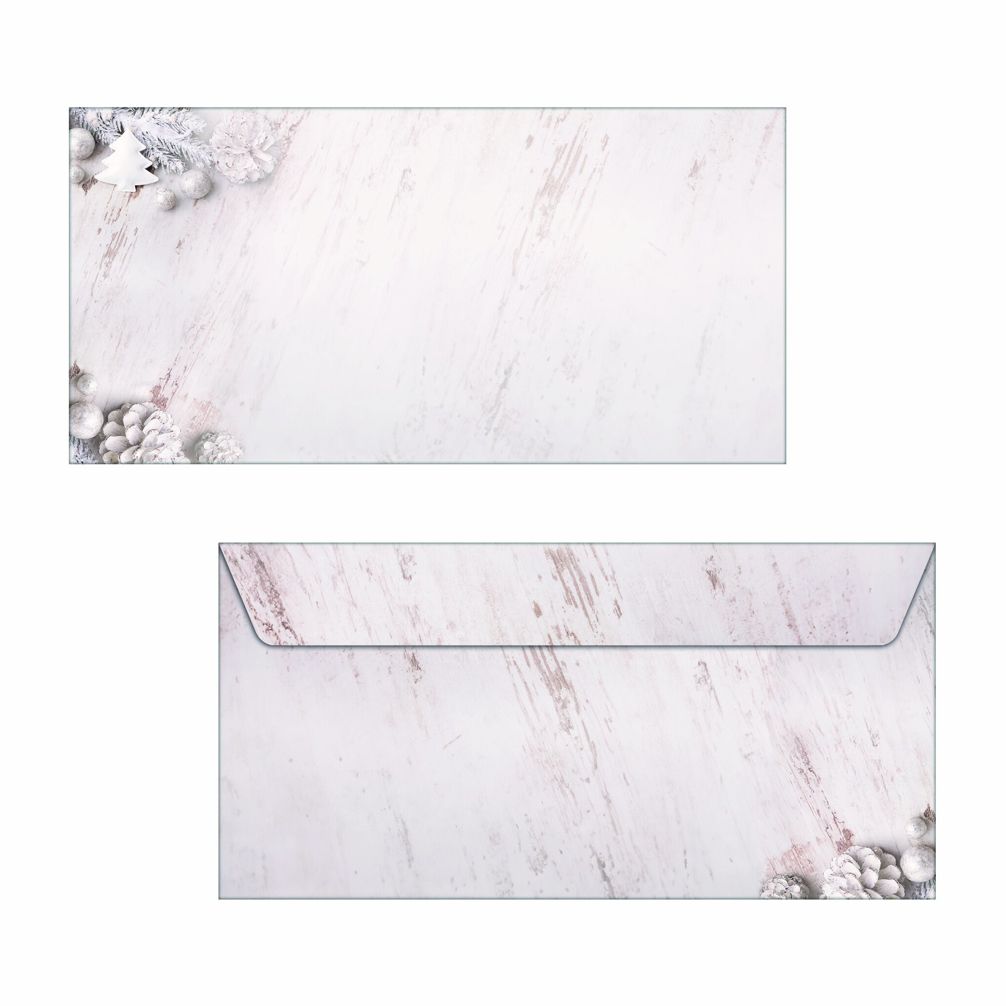 Für besondere Weihnachtsgrüße, die Sie individuell bedrucken und beschriften können. Stilvolle Weihnachtsumschläge "Rustic White" (Motiv: Tannenzapfen in beige/weiß) im Format DIN lang, 25 Stück mit gummierter Klappe. Ihre Produktvorteile:Made in EUStimmungsvolles Design, ansprechend und modernFSC-zertifiziert: hochwertiges, umweltfreundliches Papier aus verantwortungsvollen QuellenFür alle Inkjet-, Laser-Drucker und Kopierer geeignet, einfach zu gestalten mit der SIGEL Wordvorlage (Download auf Hersteller-Website) oder per Hand beschriftbarMit Innendruck zur Verhinderung der DurchsichtÜberraschen Sie Geschäftspartner, Mitarbeiter, Kollegen oder auch Freunde und Familie mit exklusiven Grüßen zur Weihnachtszeit. Individuell und unkompliziert bedruckbar - für Ihre persönliche und einzigartige Weihnachtspost im Handumdrehen. Keine Abhängigkeit von Druckereien, geringe Auflagen ganz nach Bedarf - und das in Premiumqualität. Lieferumfang: 1x Weihnachts-Umschlag DU673, 25 Stück