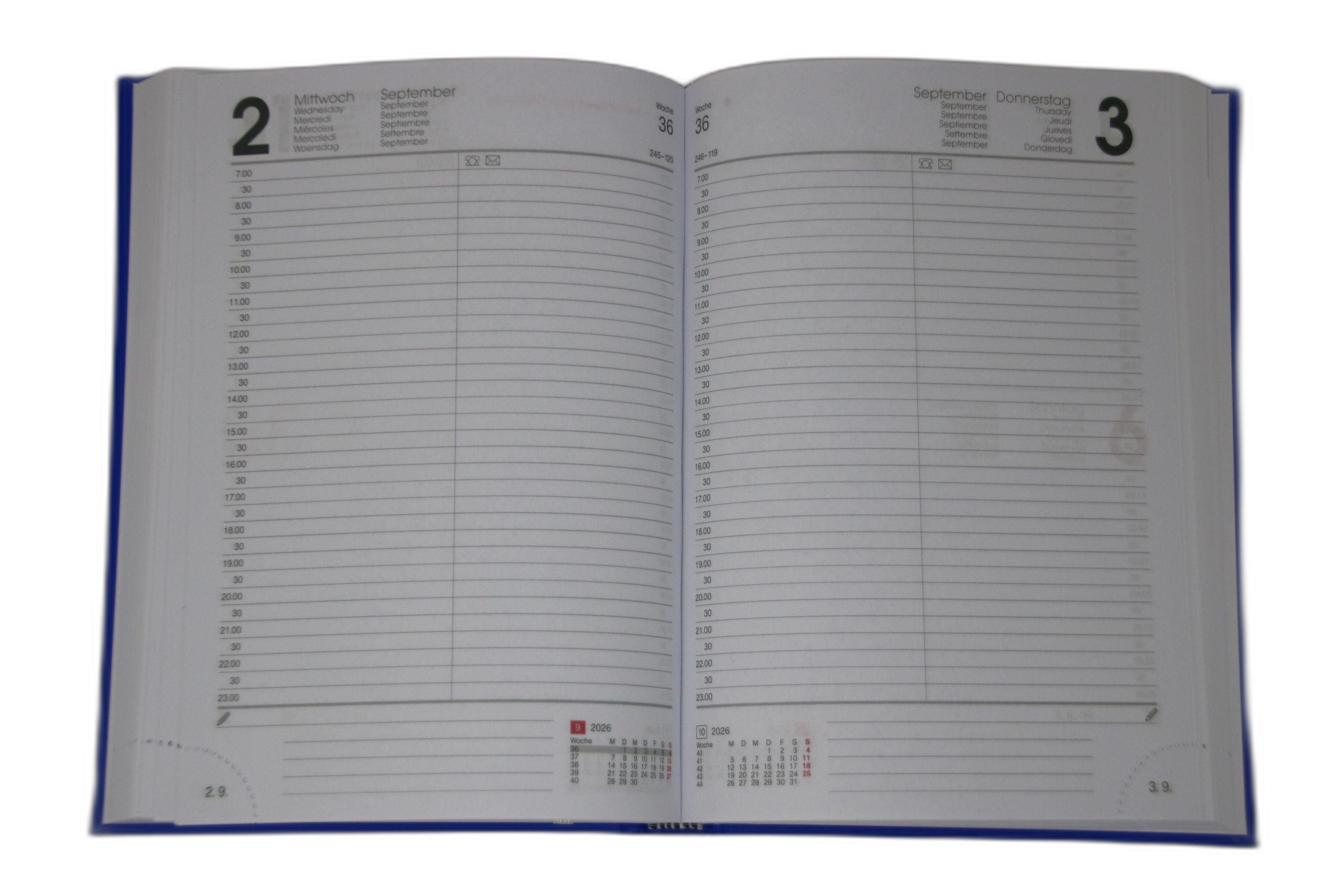 Buchkalender 79561 1S/1T blau 7-23 UHR, 352 SEITEN, BALACRON-EINBAND