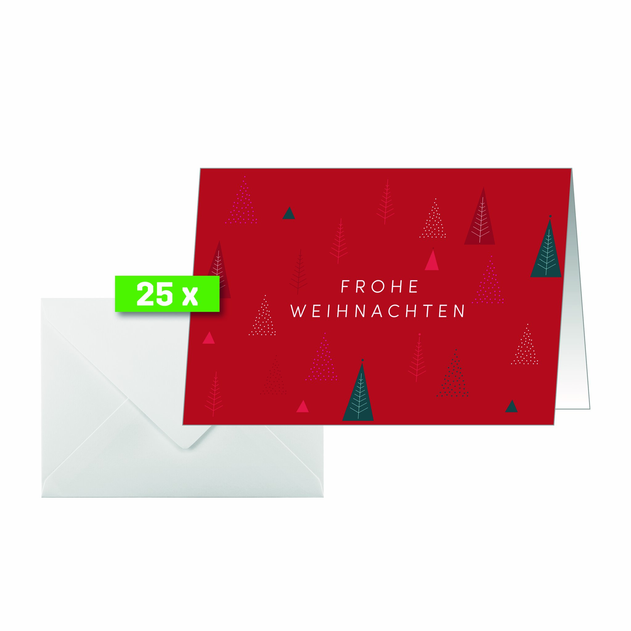 Für besondere Weihnachtsgrüße, die Sie individuell bedrucken und beschriften können. Mit einmaligem Motiv und ruck-zuck bedruckt: Weihnachts-Karten "Ruby Pines" (Motiv: Tannenbäume in rot) im Format A6 (250 g/m², 25 Karten, Karte: Weißkarton | Umschlag: Weißpapier). Ihre Produktvorteile:Made in GermanyStimmungsvolles Design, ansprechend und modernFSC-zertifiziert: hochwertiges, umweltfreundliches Papier aus verantwortungsvollen QuellenFür alle Inkjet-, Laser-Drucker und Kopierer geeignet, einfach zu gestalten mit der SIGEL Wordvorlage (Download auf Hersteller-Website) oder per Hand beschriftbarKlappkarten für Ihre Weihnachtspost, als Einladung oder Weihnachtsmenü-KarteÜberraschen Sie Geschäftspartner, Mitarbeiter, Kollegen oder auch Freunde und Familie mit exklusiven Grüßen zur Weihnachtszeit. Individuell und unkompliziert bedruckbar - für Ihre persönliche und einzigartige Weihnachtspost im Handumdrehen. Keine Abhängigkeit von Druckereien, geringe Auflagen ganz nach Bedarf - und das in Premiumqualität. Lieferumfang: 1x Weihnachts-Karten DS636, 25 Karten, inkl. Umschläge
