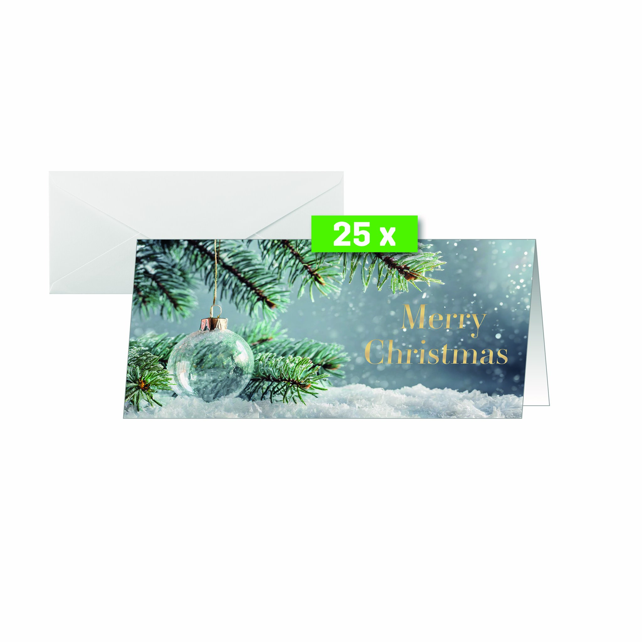 Für besondere Weihnachtsgrüße, die Sie individuell bedrucken und beschriften können. Mit einmaligem Motiv und ruck-zuck bedruckt: Weihnachts-Karten "Snowy Idyll" (Motiv: Weihnachtskugel in grün/gold/weiß) im Format DIN lang (250 g/m², 25 Karten, Karte: Weißkarton | Umschlag: Weißpapier). Ihre Produktvorteile:Made in GermanyStimmungsvolles Design, ansprechend und modernFSC-zertifiziert: hochwertiges, umweltfreundliches Papier aus verantwortungsvollen QuellenFür alle Inkjet-, Laser-Drucker und Kopierer geeignet, einfach zu gestalten mit der SIGEL Wordvorlage (Download auf Hersteller-Website) oder per Hand beschriftbarKlappkarten für Ihre Weihnachtspost, als Einladung oder Weihnachtsmenü-KarteÜberraschen Sie Geschäftspartner, Mitarbeiter, Kollegen oder auch Freunde und Familie mit exklusiven Grüßen zur Weihnachtszeit. Individuell und unkompliziert bedruckbar - für Ihre persönliche und einzigartige Weihnachtspost im Handumdrehen. Keine Abhängigkeit von Druckereien, geringe Auflagen ganz nach Bedarf - und das in Premiumqualität. Lieferumfang: 1x Weihnachts-Karten DS637, 25 Karten, inkl. Umschläge