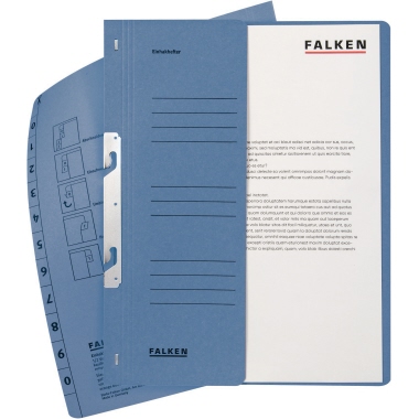 Produktbeschreibung Einhakhefter Falken 80003999 A4 blau 1/2 Deckel, 250g, kaufm. Heftung