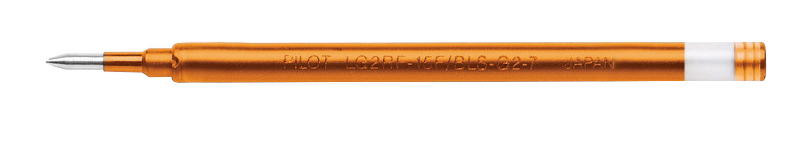 Gelschreibermine für G2-7 (2605), G2 Penstylus (2655), Véga (2514), G-Knock (2716) und B2P Gel 0.7 (2719). Edelstahlspitze mit Wolfram-Karbid-Kugel für besonders hohe Druckresistenz und Langlebigkeit. Kugeldurchmesser: 0,7 mm (M). Strichbreite: ca. 0,4 mm. Schreibfarbe: Orange.