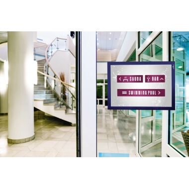Der Info-Rahmen kann an tragfähige, glatte Oberflächen geklebt und z. B. von Glas wieder entfernt werden. Für Dokumente wie z. B. Raumkennzeichnung, Orientierungsinformationen und Angebote. Schnelles Einlegen und einfaches Auswechseln von Dokumenten durch aufklappbaren Magnetrahmen. Doppelseitige Lesbarkeit an Glasflächen durch 2 Einlagen. Identische Optik des Rahmens von beiden Seiten. Anwendbar im Hoch- und Querformat.