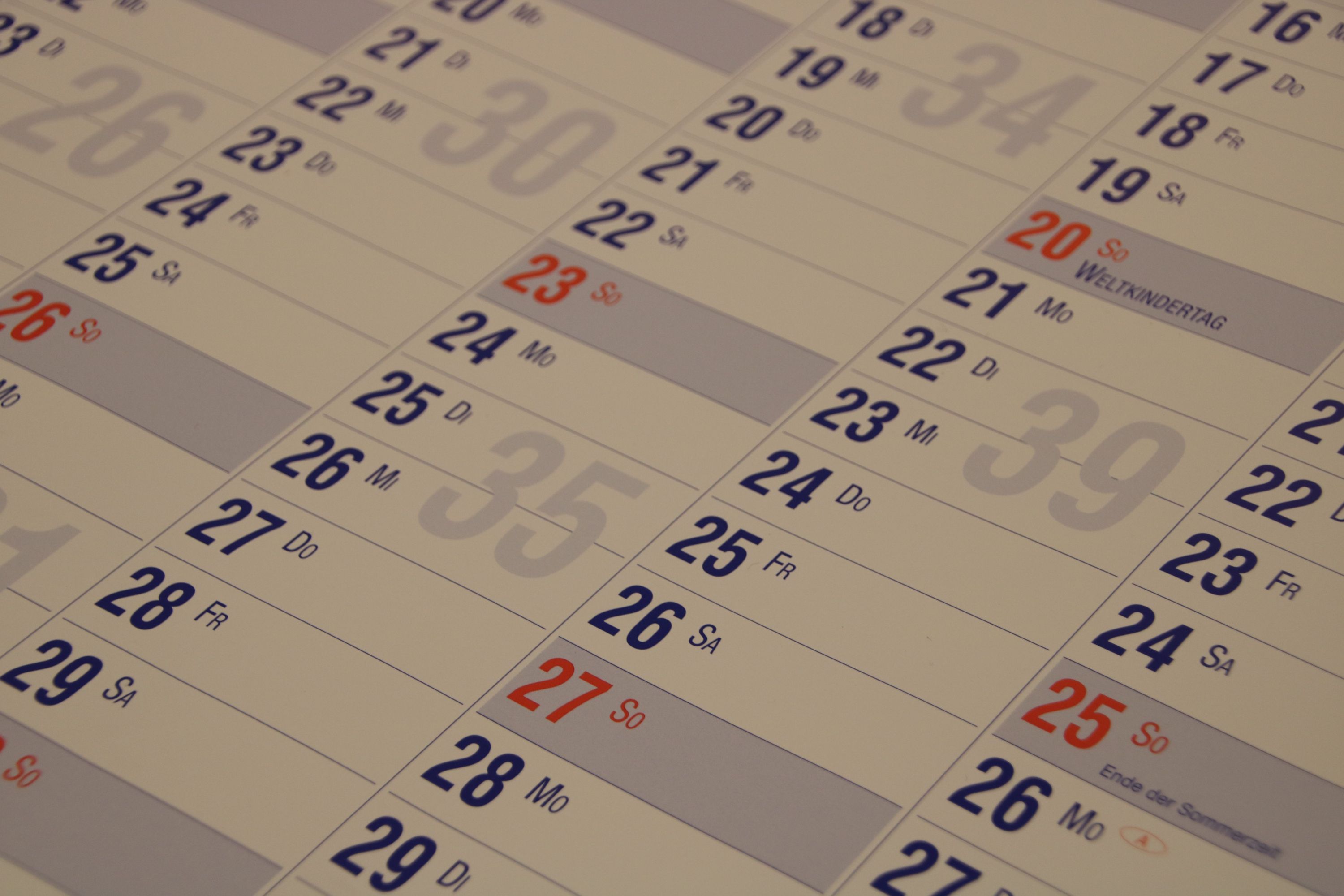 Sonn- und Feiertage rot hervorgehoben. Mit Ferienterminen.