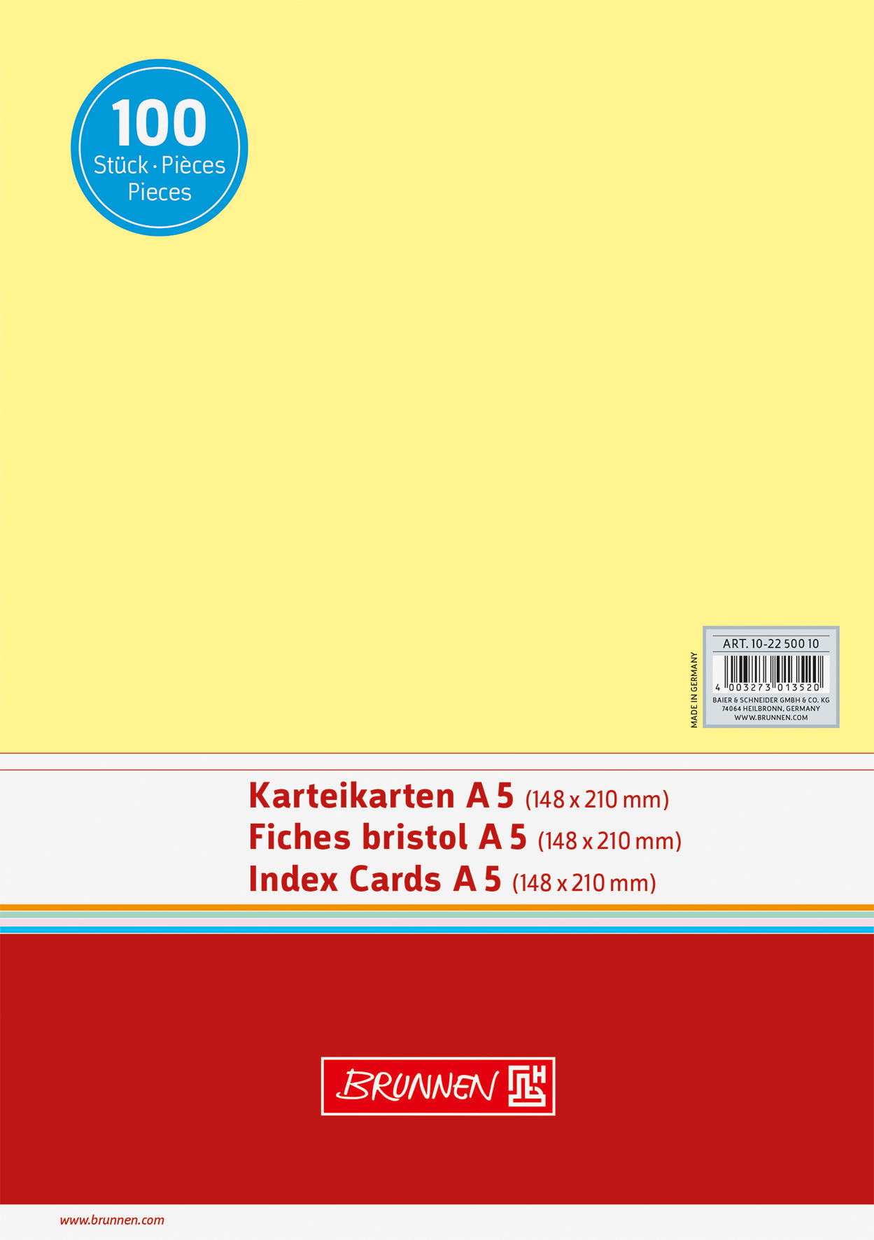 Produktbeschreibung Karteikarten BRUNNEN 22500 A5 unliniert gelb 100 Stück