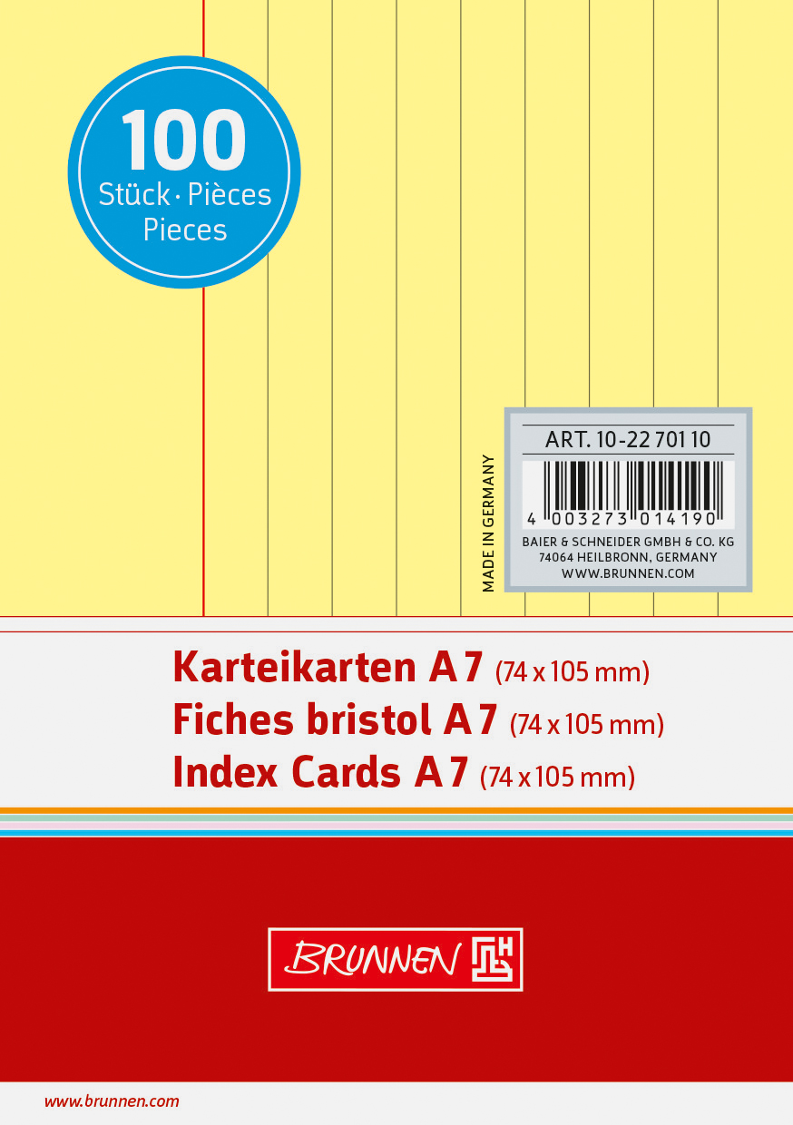 Produktbeschreibung Karteikarten BRUNNEN 22701 A7 liniert gelb 100 Stück