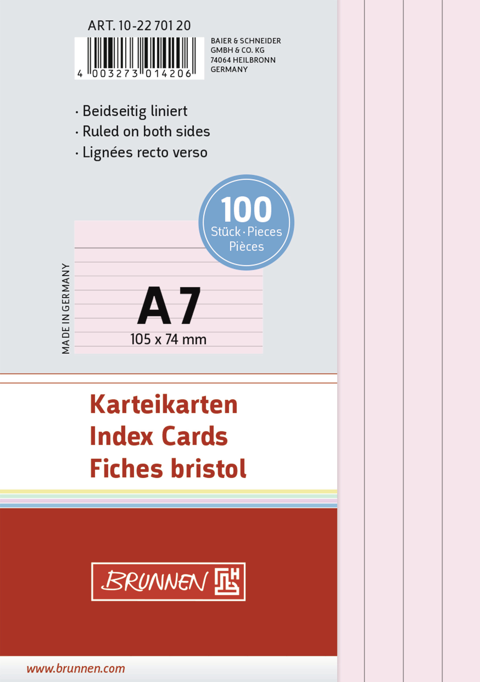 Produktbeschreibung Karteikarten BRUNNEN 22701 A7 liniert rot 100 Stück