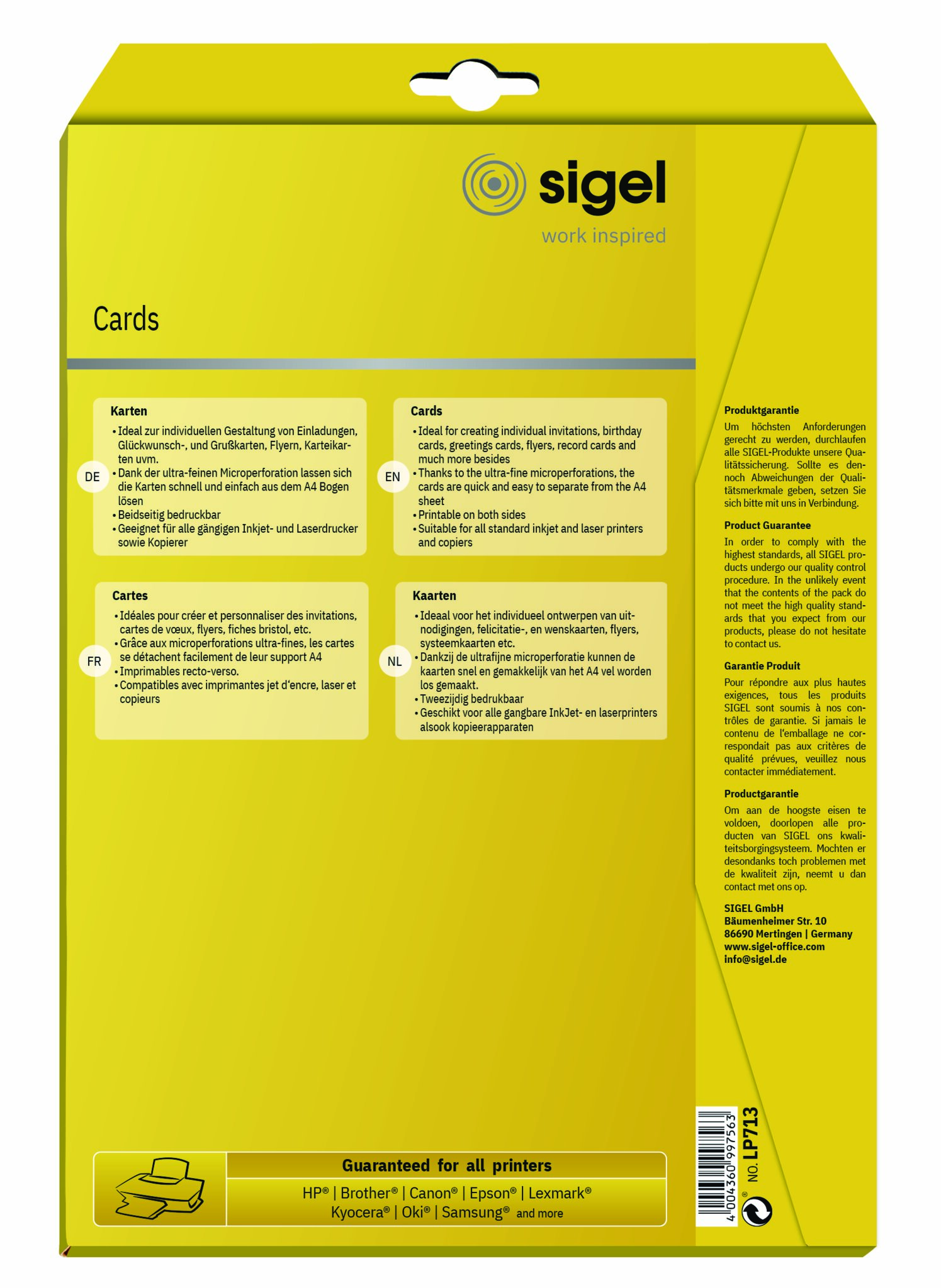 Produktbeschreibung Korrespondenz-Karten Sigel LP713 DL ws 210x99mm 185g beids.beruckb. Pk.60 St.