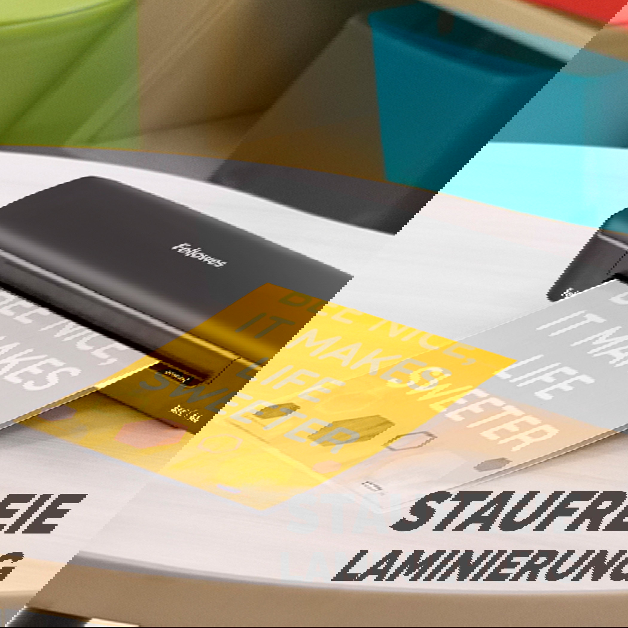 Laminiergerät für die gelegentliche Verwendung. Dank nur einem Schalter auch für Laminiereinsteiger leicht zu bedienen. Auslösehebel zur Staubeseitigung.
