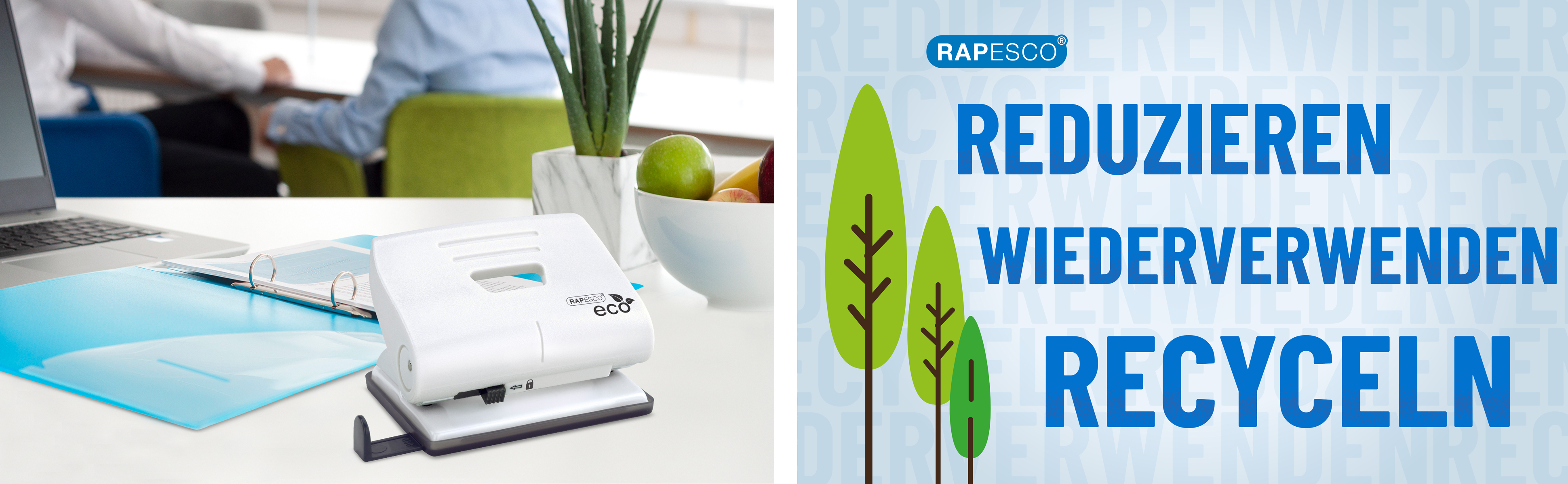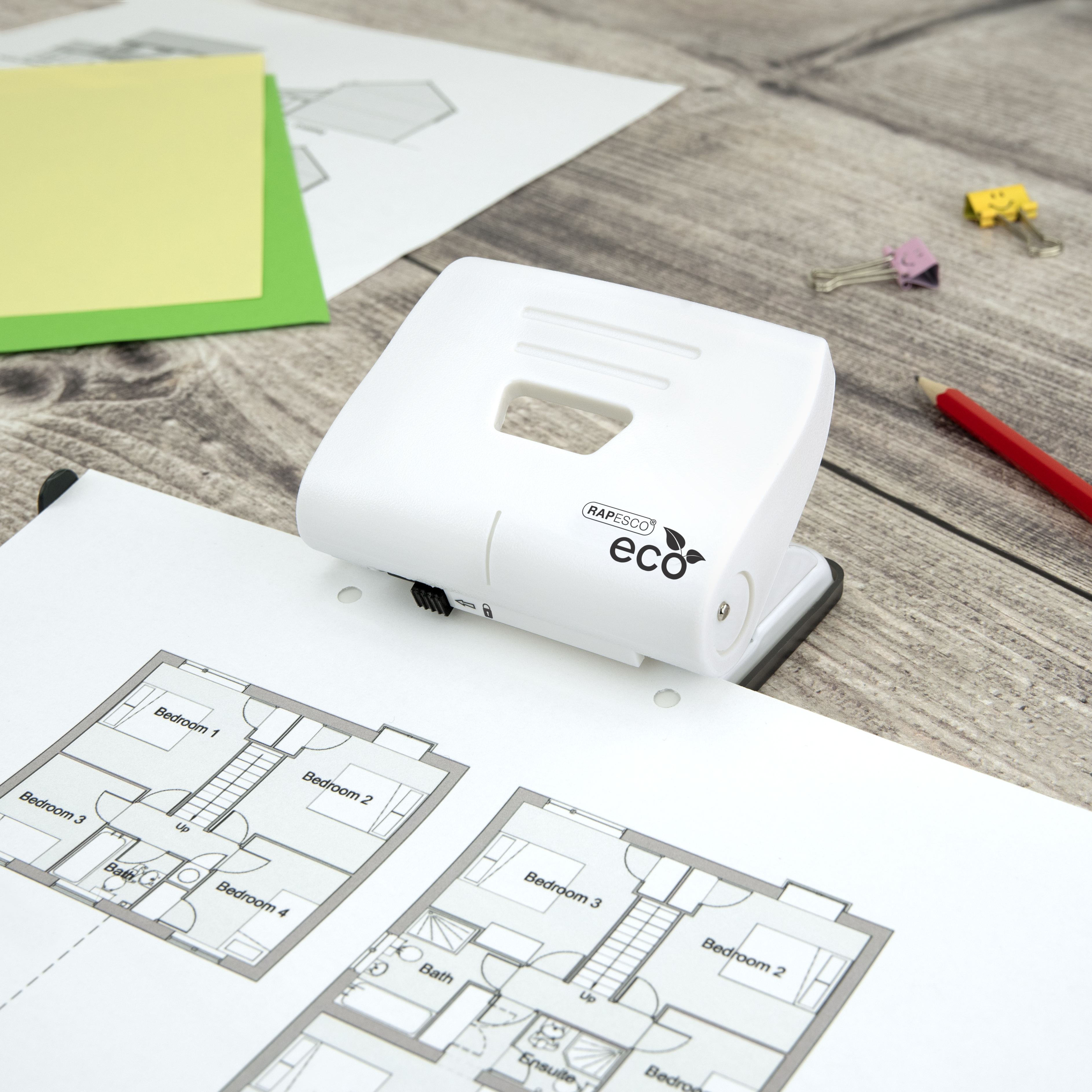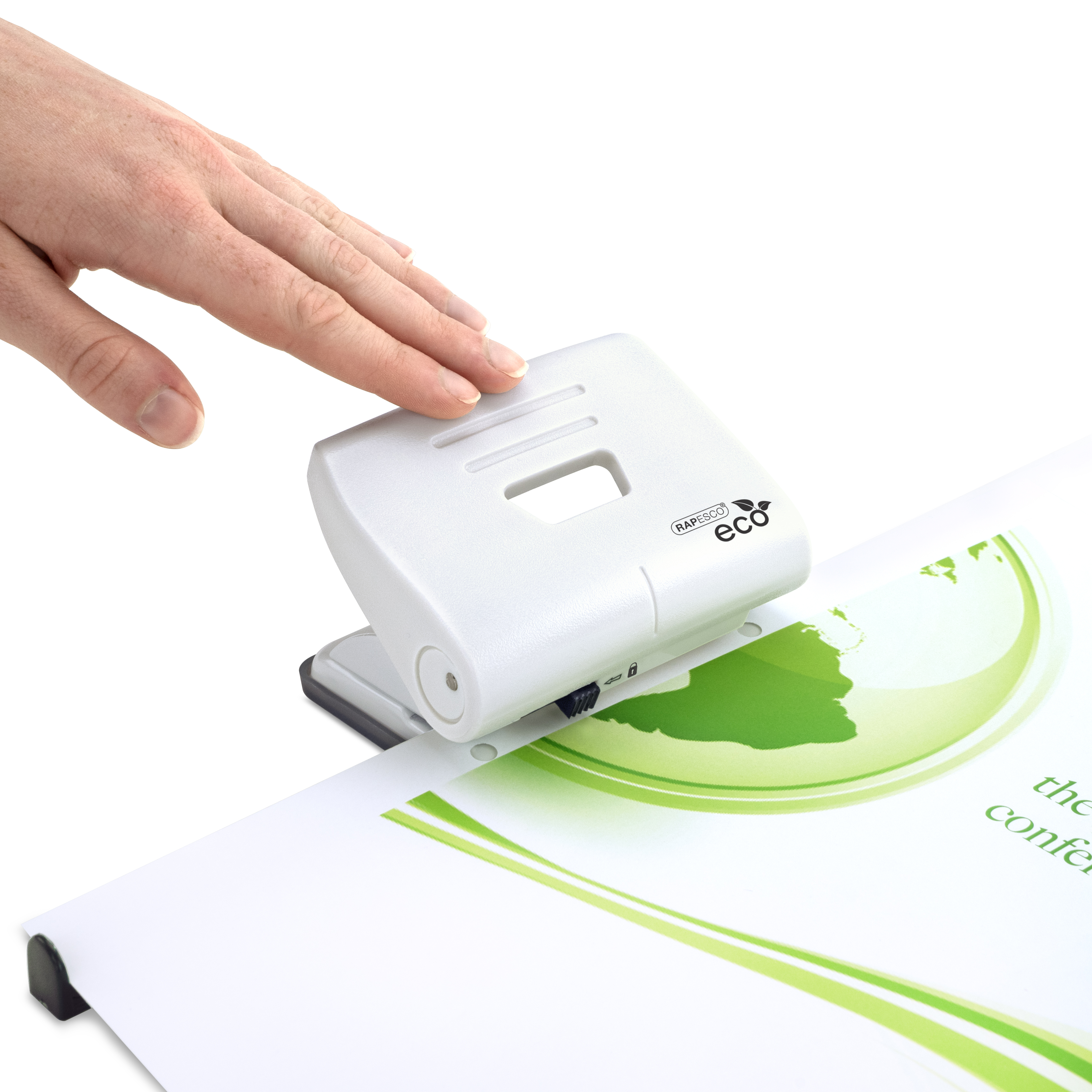 Der ECO Locher wird in minimaler Verpackung geliefert, die vollständig recycelbar ist. Das Gerät ist Teil des umweltfreundlichen Produktsortiments von Rapesco. Dank seinen doppelt gehärteten Lochstanzen arbeitet dieses Gerät sauber und präzise. 15 Jahre Garantie gegen Material- und Herstellungsfehler.