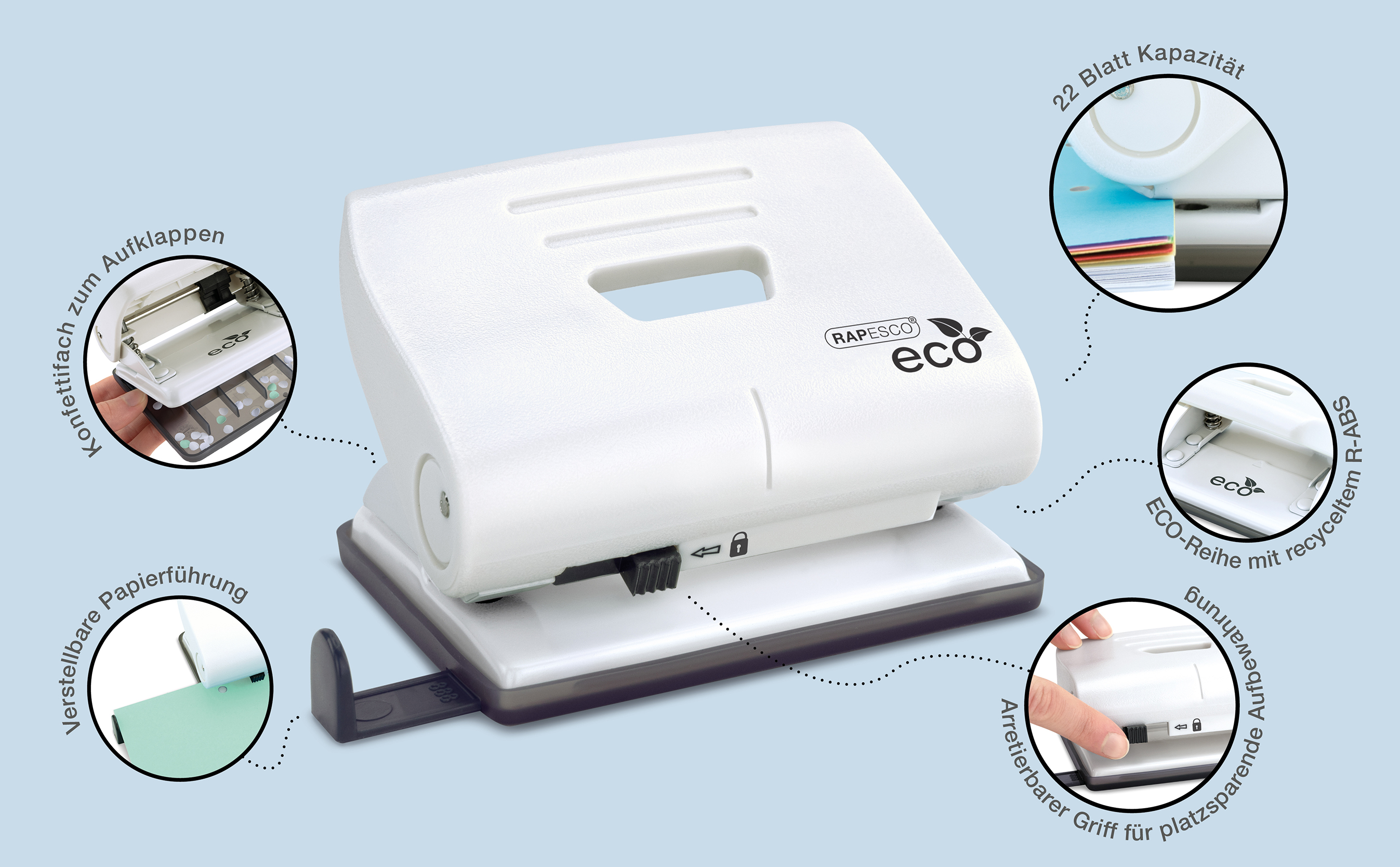 Produktbeschreibung Locher Rapesco 1522 ECO weiß 22 Blatt