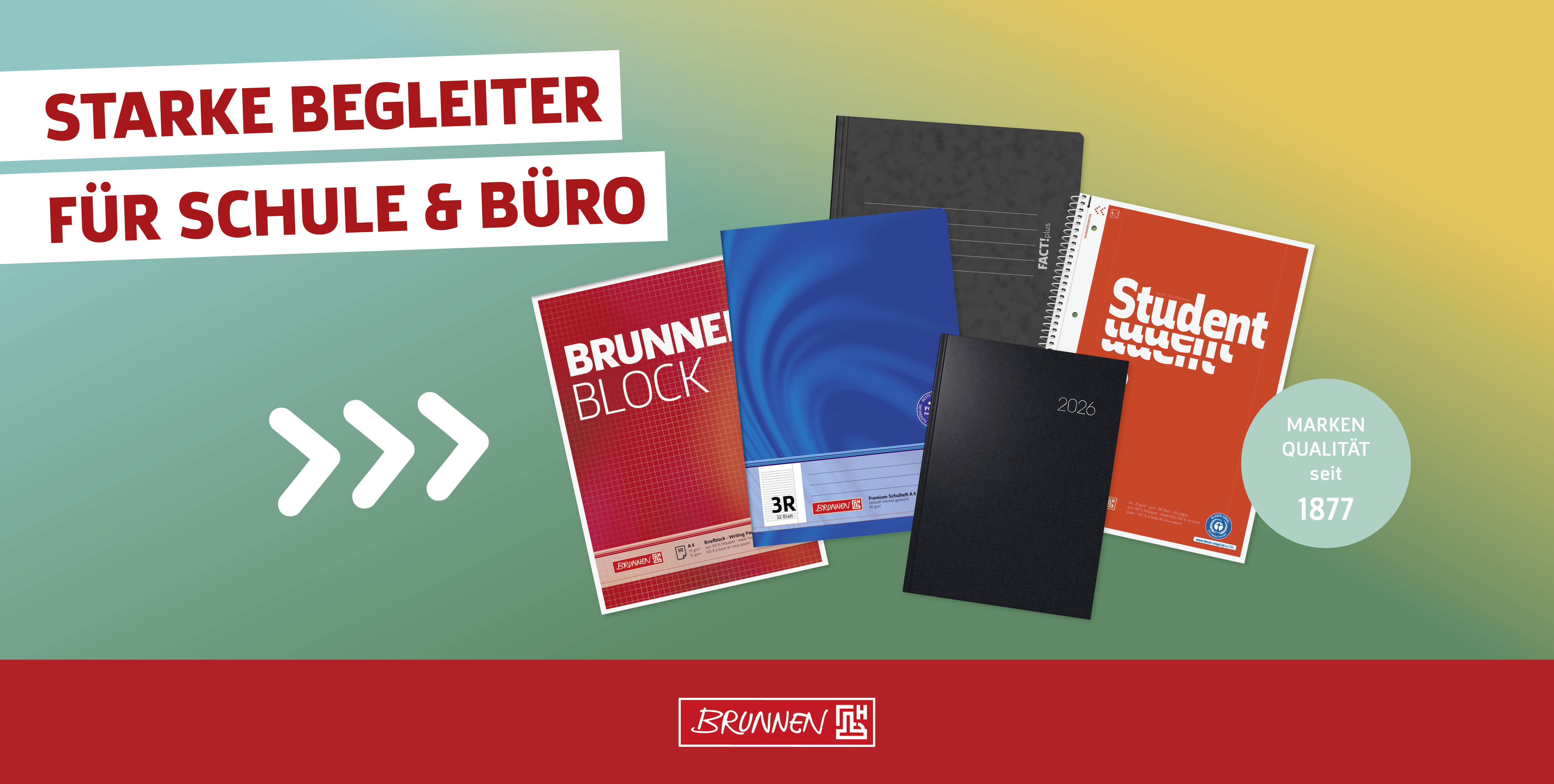 BRUNNEN steht für hochwertige Papier- und Schreibwaren mit langjähriger Tradition. Als etablierter und führender Hersteller in diesem Segment verbindet die Marke Erfahrung, Qualität und zeitgemäßes Design.