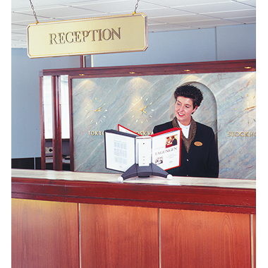 Formschöner, eleganter Tischständer für 10 Sichttafeln DIN A4. Durch Steckverbindung beidseitig erweiterbar mit dem SHERPA® Erweiterungsmodul 5624 bis zu einer Kapazität von 100 Sichttafeln.