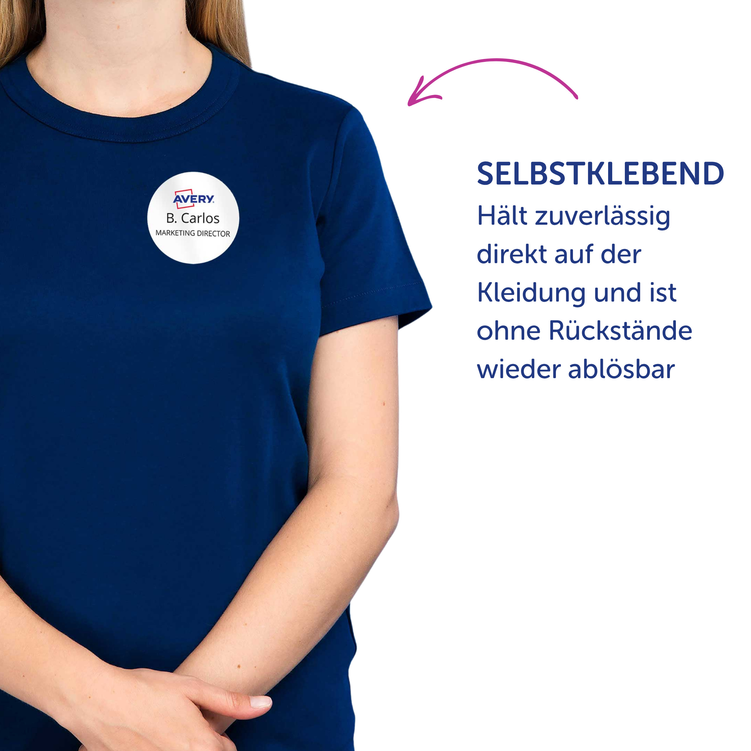 Qualität vom Etiketten-Experten: die selbstklebenden, ablösbaren Namens-Etiketten L4784-20 für Laser-Drucker von Avery Zweckform im Format 63,5 x 29,6 mm erleichtern Ihnen die Organisation von Veranstaltungen, Seminaren und Konferenzen. 540 weiße, bedruckbare Textil-Etiketten auf 20 Bogen. Die rechteckigen Namensschilder sind die perfekte Alternative zu Plastikschildern mit Nadel oder Clip. Die Namensschilder aus Acetatseide haften zuverlässig auf Kleidung und Textilien und lassen sich rückstandsfrei wieder ablösen. Die Rückseiten-Stanzung der Namensschilder erlaubt das einfache Heraustrennen der Namens-Etiketten samt Trägerfolie für eine spätere Verwendung. Die Textil-Etiketten sind nicht geeignet für Leder, Seide, Samt und andere empfindliche Textilien. Die Namens-Etiketten bieten einen garantiert staufreien Druckerdurchlauf auf allen gängigen Laser-Druckern. So arbeiten Sie effizient wie stressfrei und schaffen sich wertvolle Zeit für die wirklich wichtigen Dinge. Ideen drucken - einfach & professionell: mit Etiketten von Avery Zweckform können Sie den kostenlosen Online Etiketten-Designer unter www.avery.eu/print nutzen. Gestalten Sie Ihr Etikett mit der Software komplett selbst, verwenden Sie eine der Design-Vorlagen zu zahlreichen Themen, die Sie individuell anpassen können oder laden Sie Ihr fertiges Design hoch und drucken anschließend standgenau aus. So schnell und einfach sorgen Sie für einen professionellen Auftritt. Think & Care - Avery Zweckform ist seit 2020 klimaneutral: die Treibhausgasemissionen des Standortes werden durch zertifizierte Klimaschutzprojekte ausgeglichen. Schon seit 2014 wird ausschließlich Ökostrom/-gas verwendet. Forschung, Entwicklung, Produktion, Logistik und Verwaltung am Firmenstandort in Oberlaindern/Bayern garantieren höchste Qualitäts- und Umweltstandards sowie kurze Lieferwege. Die Etiketten aus PVC-freier Acetatseide werden klimaneutral hergestellt, die Emissionen des Materials werden kompensiert. Made in Germany.