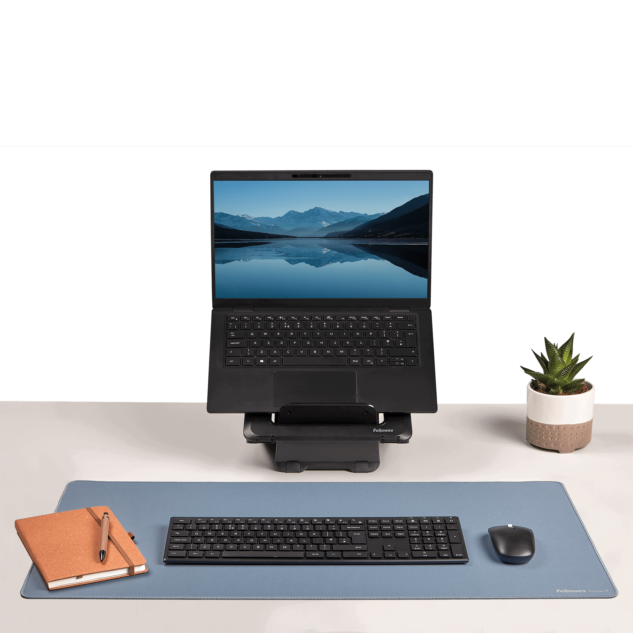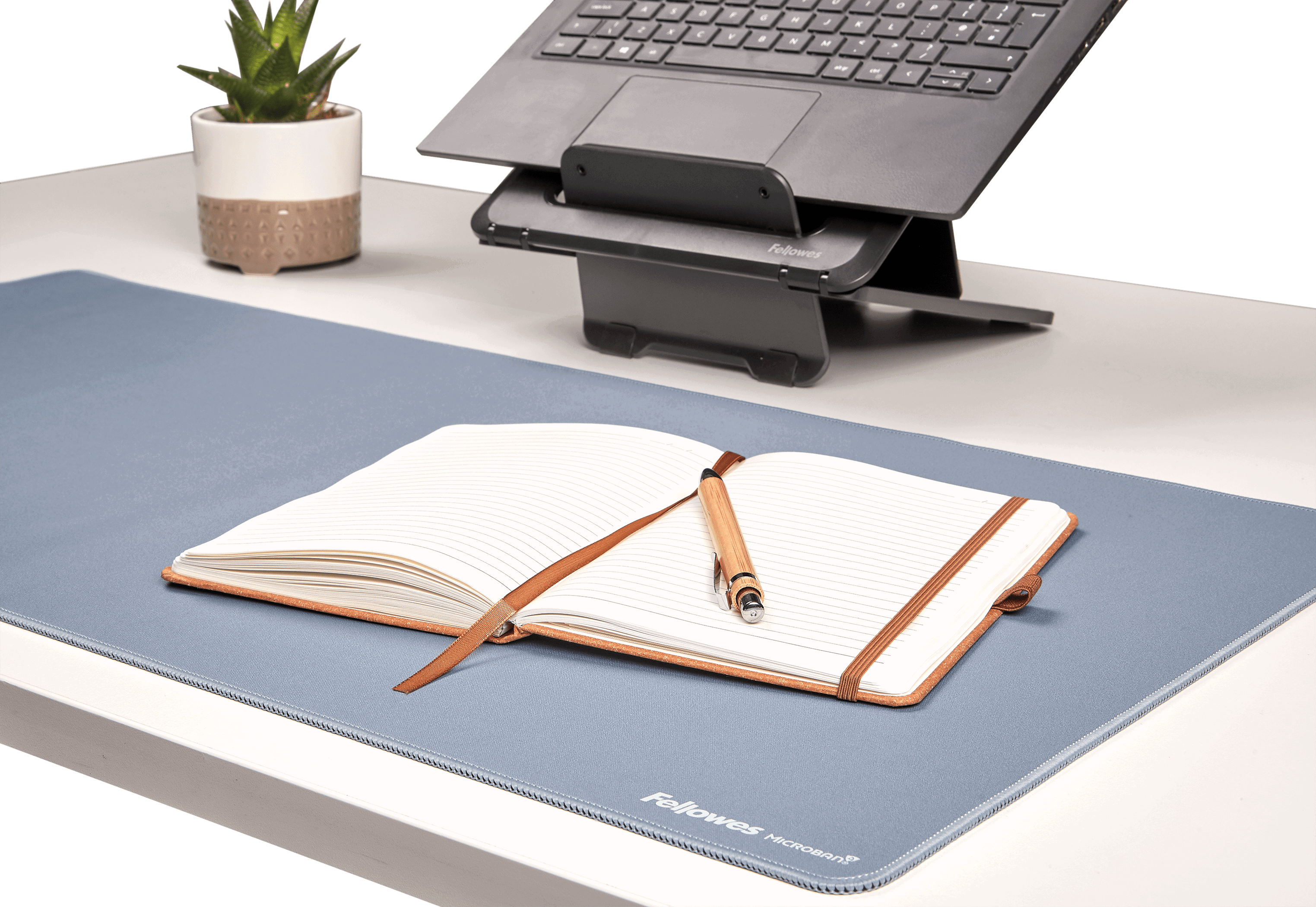 Geräumige Schreibtischunterlage schützt vor Schmutz und Kratzern und schafft eine blendfreie ArbeitsflächeBietet eine komfortable Oberfläche zum Schreiben und Tippen und verbessert gleichzeitig die MausleistungIntegrierter Microban®-Schutz hilft, das Wachstum von Bakterien zu verhindern, und ist dauerhaft aktiv, um ein zusätzliches Maß an Produktschutz zu bietenSchreibtischmatte hergestellt aus 83 % Post-Consumer recyceltem MaterialDie rutschfeste Unterseite sorgt dafür, dass die Schreibtischunterlage den ganzen Tag an ihrem Platz bleibtRobuste, flach vernähte Kanten verhindern ein AusfransenLanglebig konstruiert mit 5 Jahren eingeschränkter GarantieAbmessungen: H 0,25 x B 80 x T 40 cm