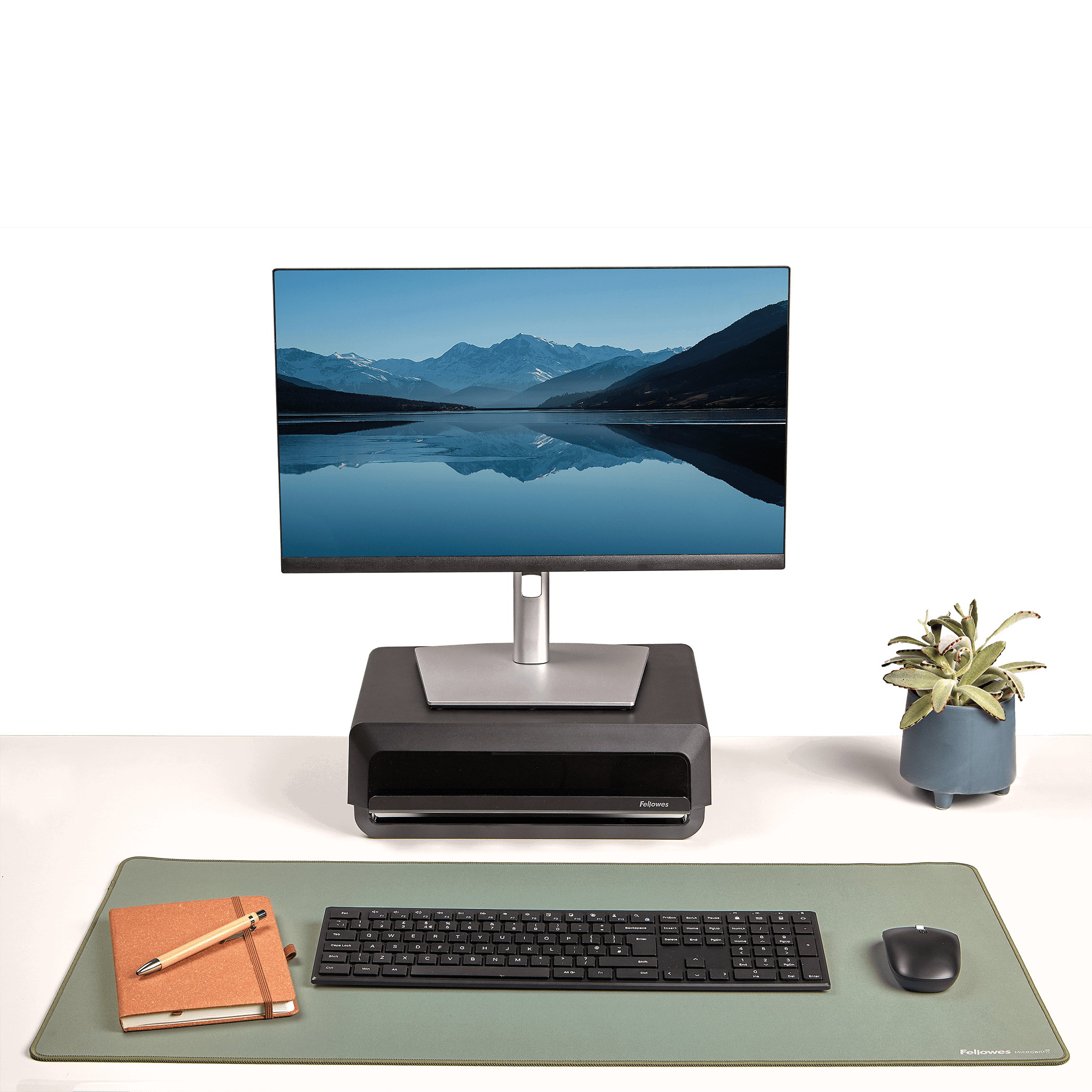Geräumige Schreibtischunterlage schützt vor Schmutz und Kratzern und schafft eine blendfreie ArbeitsflächeBietet eine komfortable Oberfläche zum Schreiben und Tippen und verbessert gleichzeitig die MausleistungIntegrierter Microban®-Schutz hilft, das Wachstum von Bakterien zu verhindern, und ist dauerhaft aktiv, um ein zusätzliches Maß an Produktschutz zu bietenSchreibtischmatte hergestellt aus 83 % Post-Consumer recyceltem MaterialDie rutschfeste Unterseite sorgt dafür, dass die Schreibtischunterlage den ganzen Tag an ihrem Platz bleibtRobuste, flach vernähte Kanten verhindern ein AusfransenLanglebig konstruiert mit 5 Jahren eingeschränkter GarantieAbmessungen: H 0,25 x B 80 x T 40 cm