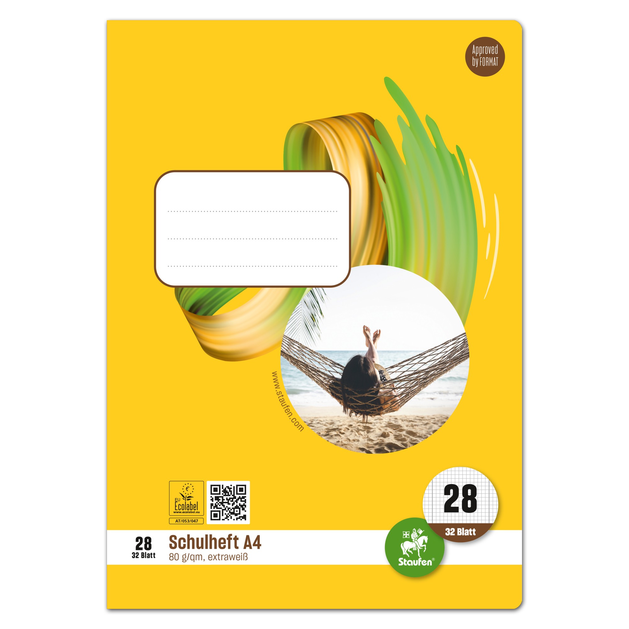 Schulheft A4 32 Bl. kariert 80g Lin28 mit RL