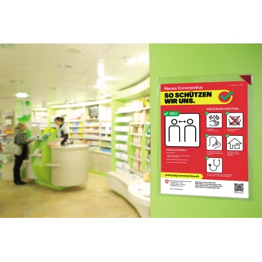 Durchsichtige Sichthülle mit magnetischem Verschluss (oben rechts). Mit 2 Klebebändern auf der Rückseite der Tasche. Haftung auf fast alle glatten Flächen (Scheiben, Tafeln, etc.). Lässt sich rückstandslos wieder entfernen. Ideal für öfter ausgetauschte Informationen. Schnelles Einführen der Dokumente durch horizontale und vertikale Öffnung. Ist bis zu 20 mal wiederverwendbar abhängig vom Verschmutzungsgrad der Klebeflächen durch Staub.