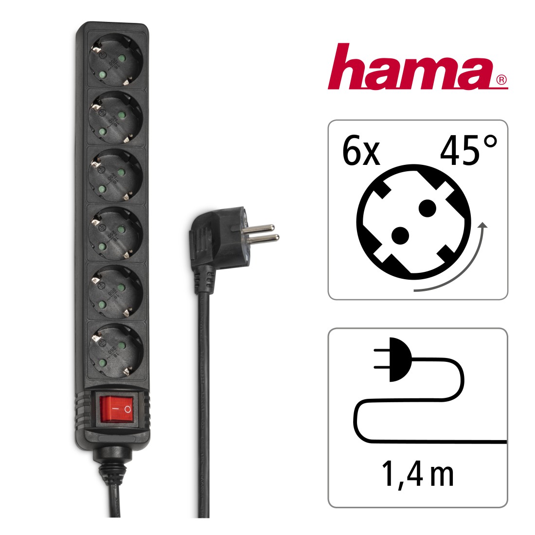 Steckdosenleiste Hama 47760 6-fach schwarz 1,4m, mit Schalter