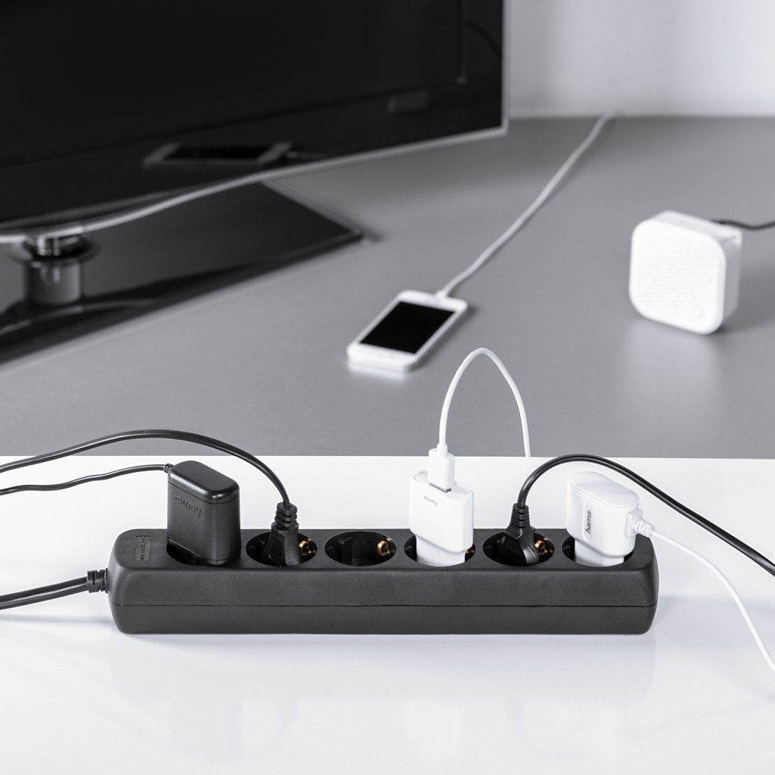 Unzählige Elektrogeräte wie etwa Stereoanlage, Fernseher DVD- und Videorecorder, Computer und Küchengeräten zieren die Wohnbereiche und lösen häufig den Steckdosennotstand aus. An der Steckdosenleiste können bis zu sechs Elektrogeräte angehängt werden. Auf diese Weise haben Sie nie wieder ein Anschlussproblem. Die Steckplätze lassen es zu, neben Netzsteckern auch sechs Schutzkontakt-Stecker gleichzeitig anzuschließen. Echt clever. 2 Jahre Gewährleistung, keine Garantie (gesetzliche Regelung).