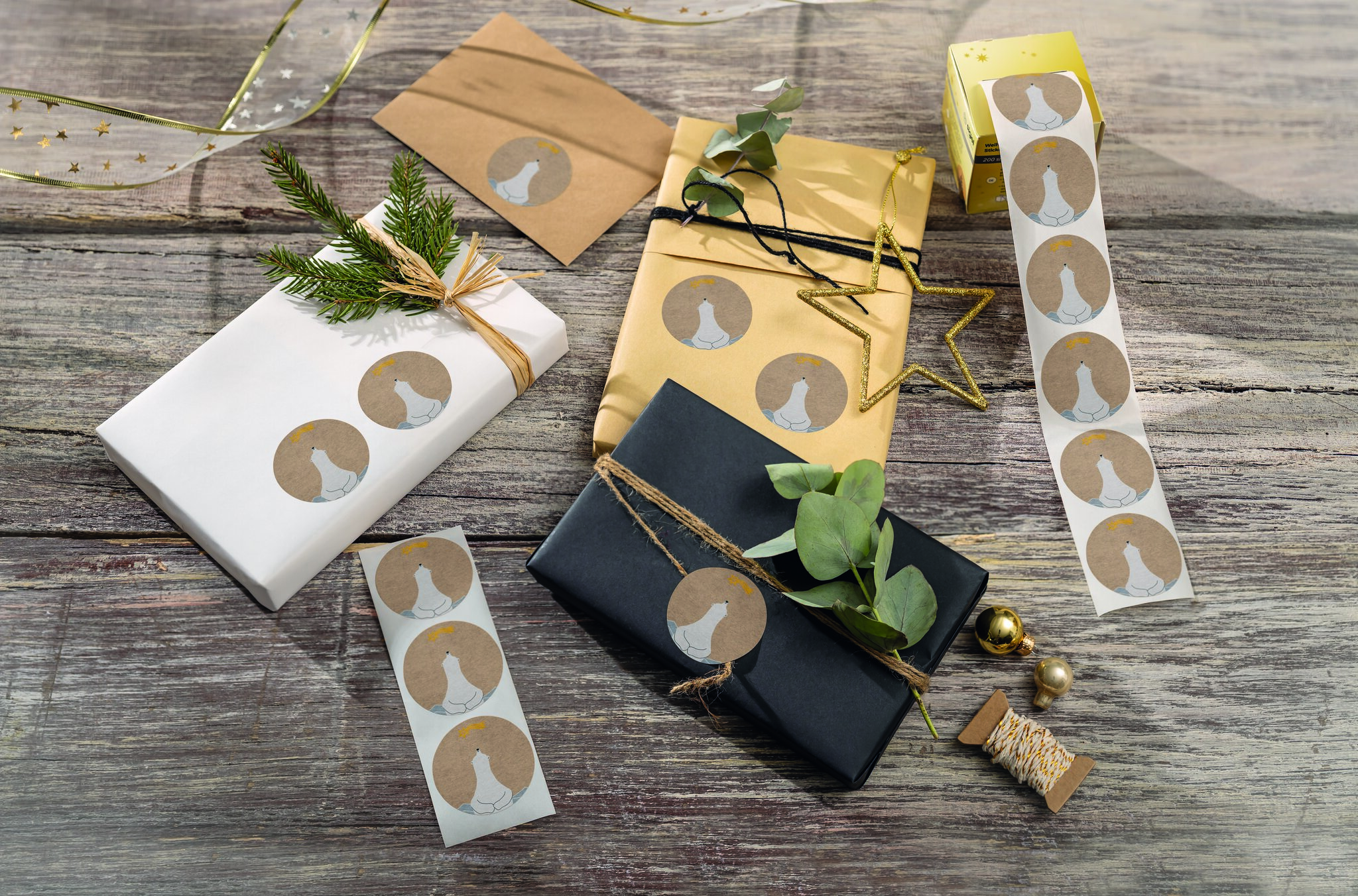 | Herstellerproduktbeschreibung: | Weihnachts-Sticker SIGEL Polar bear with Shooting Star, braun/weiß/gelb, 47x47 mm, Braunpapier, 200 Sticker |