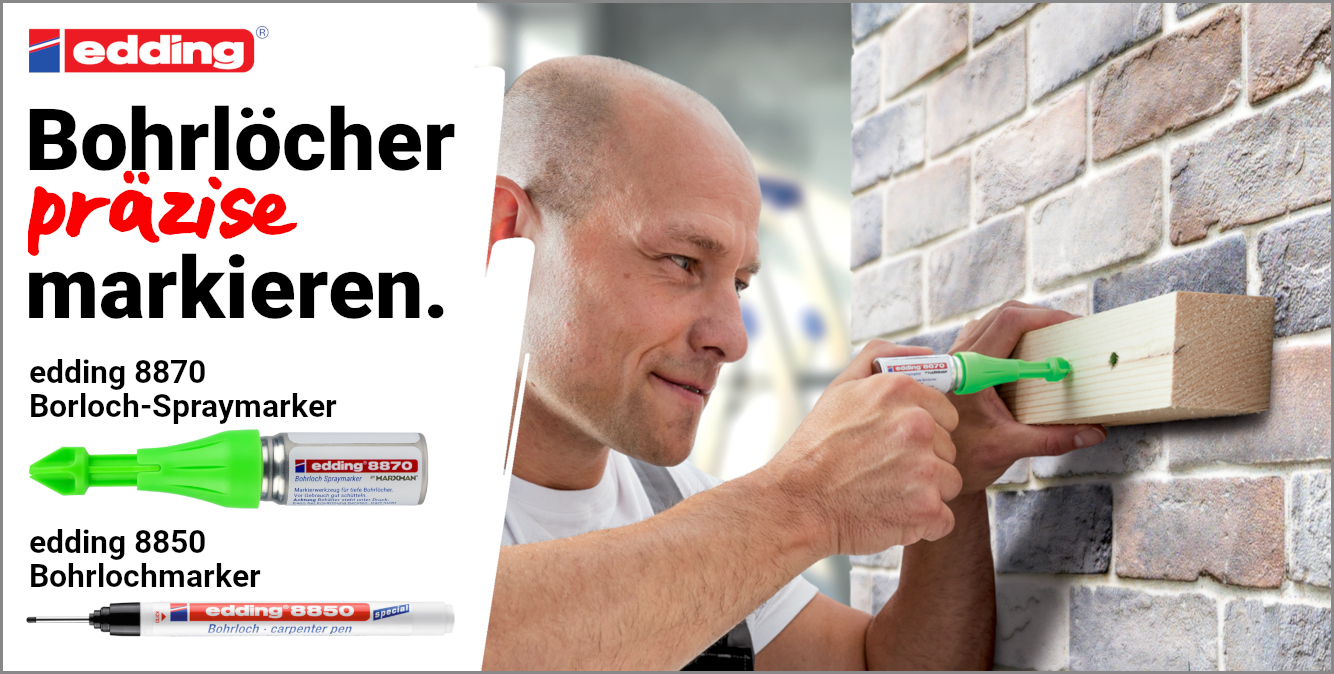Bohrlöcher präzise markieren mit zwei innovativen Bohrlochmarkern von edding.
