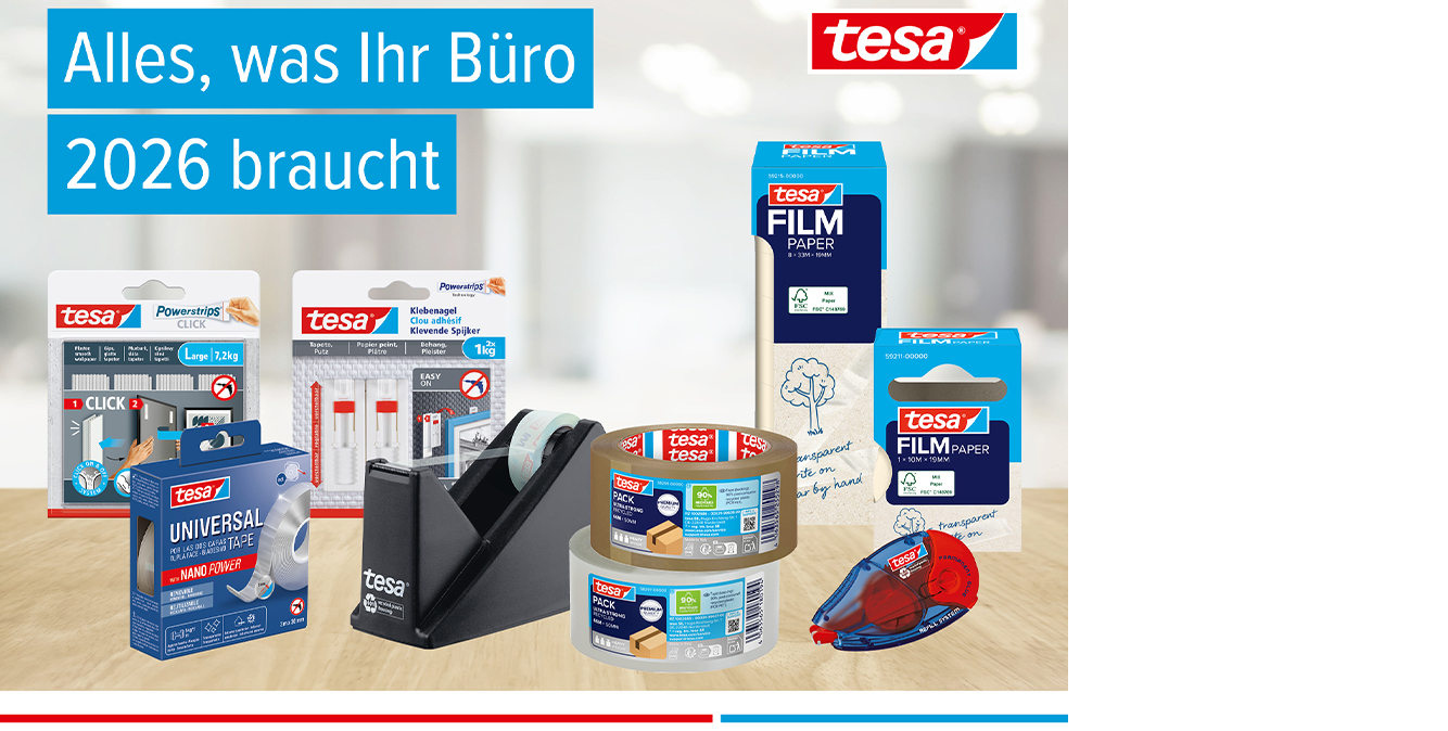 Ob im Büro, Zuhause oder in der Produktion: Das umfassende Sortiment von tesa steht für Qualität, Innovation und Zuverlässigkeit. Mit starken Klebelösungen und cleveren Produkten erleichtert tesa Ihren Alltag und sorgt dafür, dass alles perfekt hält.