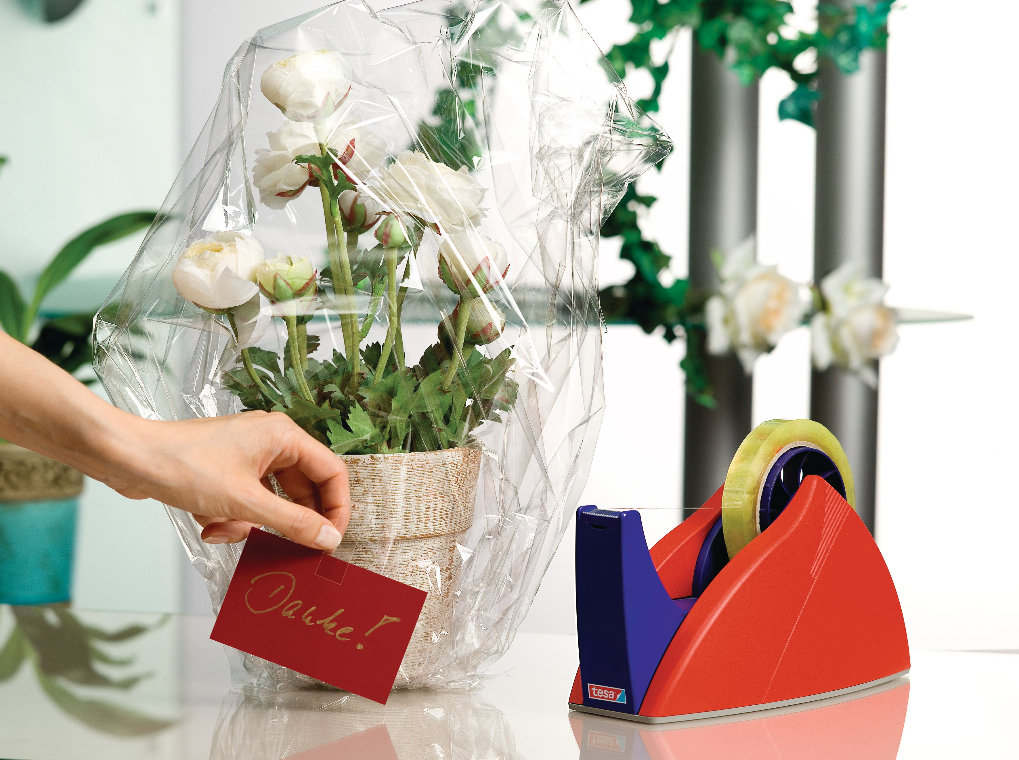 Produktbeschreibung Tischabroller Tesa 57422 rot/blau 66mx25mm
