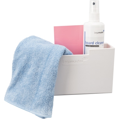 Zum Aufbewahren von Zubehör wie Reiniger, Tücher, Löscher und Magic-Chart Notes.